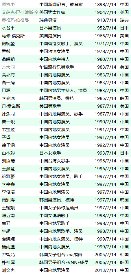 中國明星國籍一覽表
