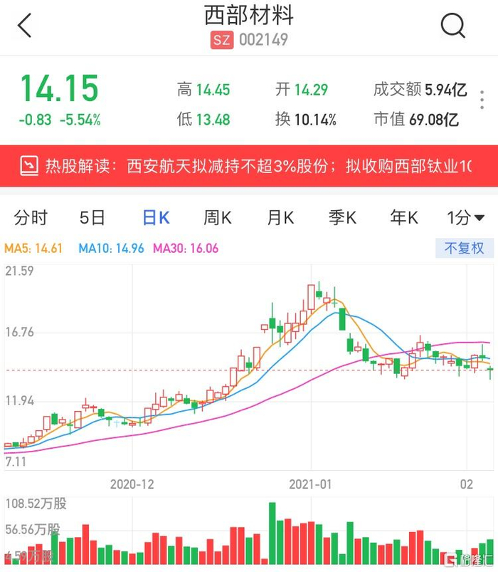 西部材料股票基本情況